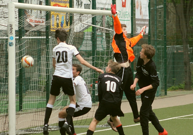 Die Jungs vom Teschsportplatz gingen frühzeitig durch einen Kopfballtreffer in Führung, schafften es im Laufe der ersten Halbzeit jedoch nicht, trotz deutlicher Überlegenheit nicht, den Ball ein zweites Mal im Kasten der Fortunen zu versenken.