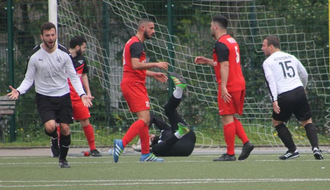 Der Spandauer Ömer Yesilli erwischt ihn, stürmt am rechten Flügel vor und drückt an der Strafraumgrenze aus vollem Lauf ab. Der Ball saust an Rotation-Keeper Manuel Kessler vorbei ins Netz – 1:1.